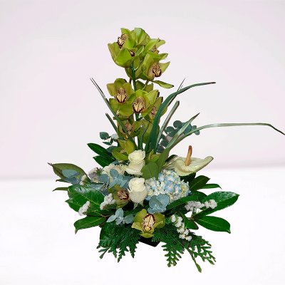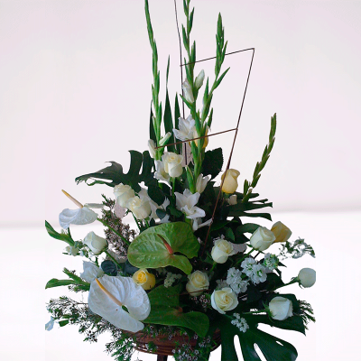 Las palmas y los centros funerarios son otra de las opciones que puedes encontrar entre nuestros productos. Son mucho más económicos que las coronas funerarias, por lo que también son más comunes entre nuestros pedidos.