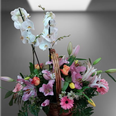 €150.00 – €170.00 Seleccionar opciones Este producto tiene múltiples variantes. Las opciones se pueden elegir en la página de productoCruz blanca de lilium y claveles – C1